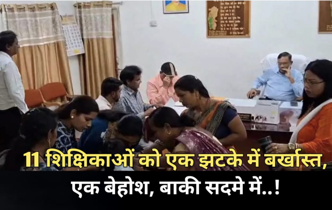 बेमेतरा :- जिले के स्वामी आत्मानंद उत्कृष्ट अंग्रेजी माध्यम स्कूल से रविवार को एक साथ 11 शिक्षिकाओं और एक आया को सेवा से हटा दिया गया। डीईओ कार्यालय में सभी को अचानक बुलाकर बर्खास्तगी आदेश सौंपा गया, जिसके बाद एक शिक्षिका सदमे में बेहोश हो गईं। इस अप्रत्याशित कार्रवाई से शिक्षा विभाग में हड़कंप मच गया है।