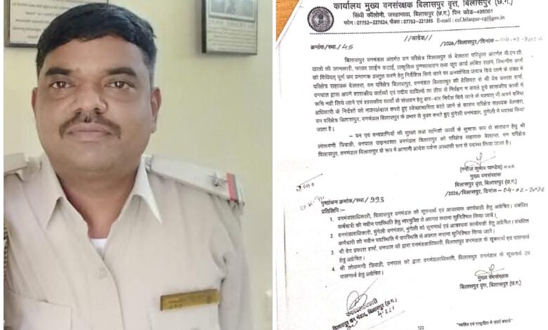 बिलासपुर :- बिलासपुर वनमंडल से जुड़ी एक अहम प्रशासनिक कार्रवाई सामने आई है। मुख्य वनसंरक्षक बिलासपुर वृत्त ने शासकीय कार्यों में लापरवाही और अनुशासनहीनता को गंभीरता से लेते हुए बेलतरा परिक्षेत्र सहायक के खिलाफ सख्त कदम उठाया है।आदेश के अनुसार, बेलतरा परिवृत्त में पदस्थ वनपाल वेद प्रकाश शर्मा पर विभागीय कार्यों को लंबे समय तक लंबित रखने के आरोप हैं। बीएमसी खातों की जानकारी प्रस्तुत न करना, फायर लाइन कटाई, प्राकृतिक पुनरुत्पादन और कूप कार्यों को समय पर पूरा न करना इसमें शामिल है।